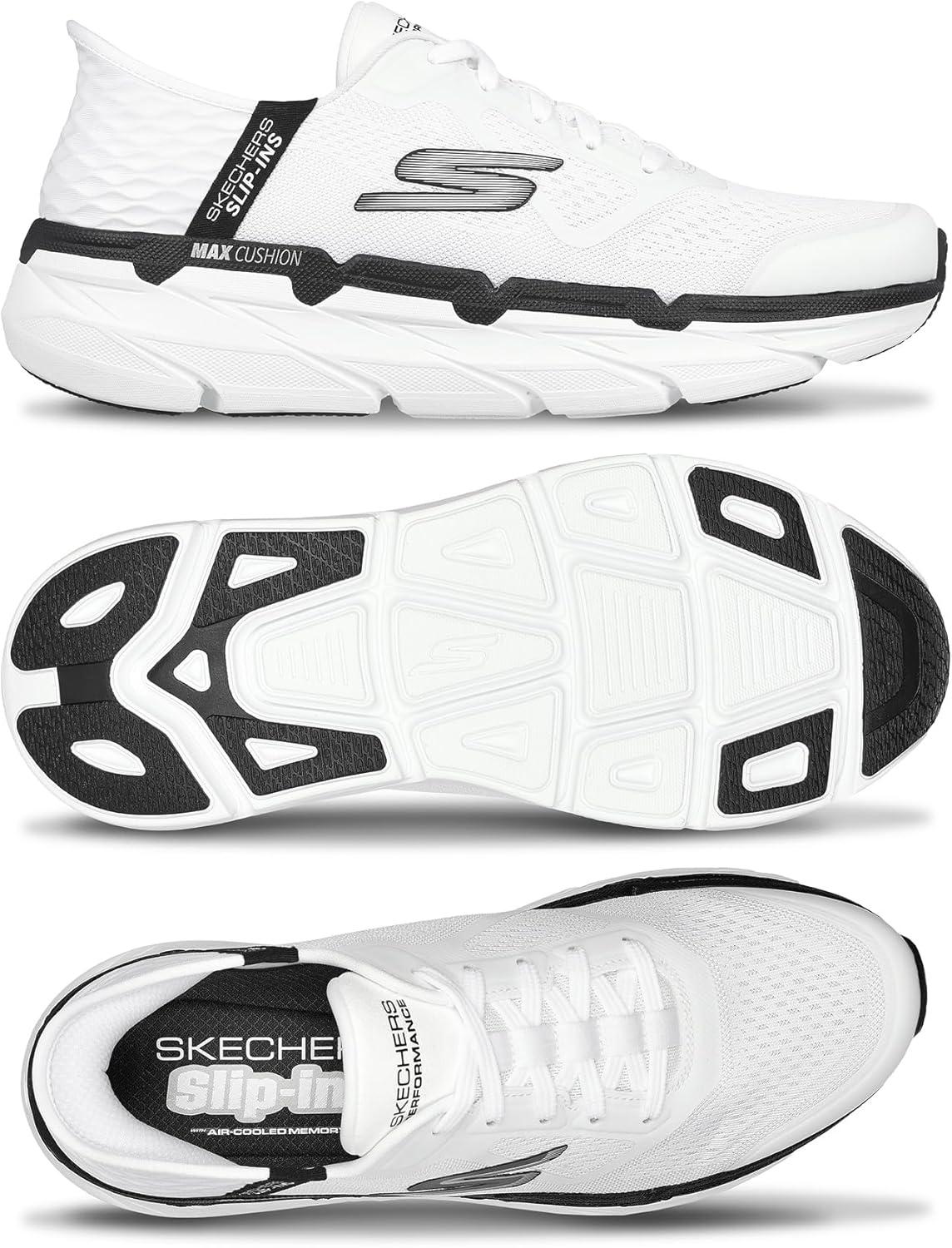 Skechers Mens Max Cushioning Slip-ins – Athletic Workout Running Walking Shoes with Memory Foam(White)