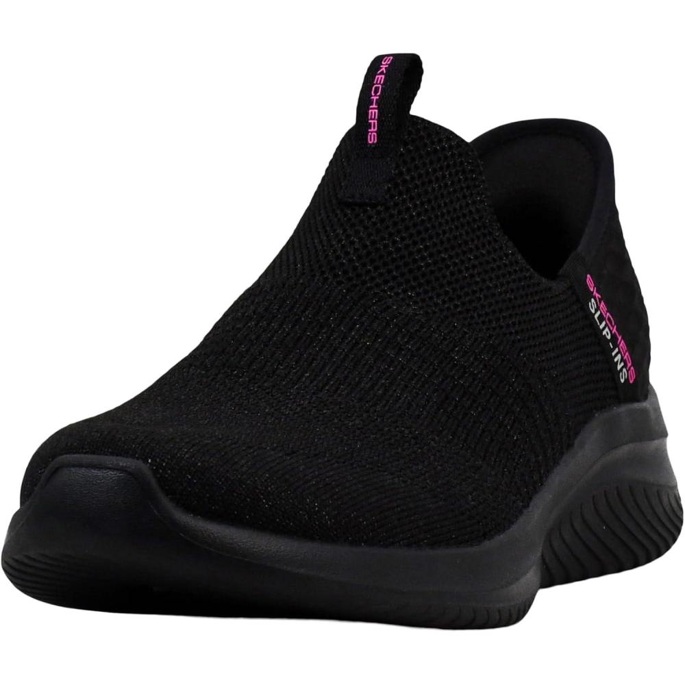 Skechers Women’s Hands Free Slip Ins Ultra Flex 3.0 Smooth Step Sneaker(Black/Hot Pink)